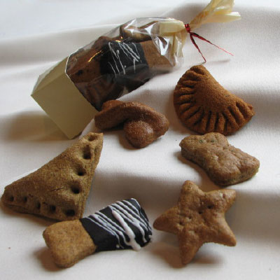 A decorative gift bag assortment for small to medium size dogs. Includes 6 of our most popular treats made into a smaller size that small dogs can appreciate: Lamb & Brown Rice Bone, Apple Cheddar Puptart, Chicken & Cheese Roll-Over, Bacon & Cheese Taco, Banana Bowtie, and a Peanut Butter & Bacon Bowtie.