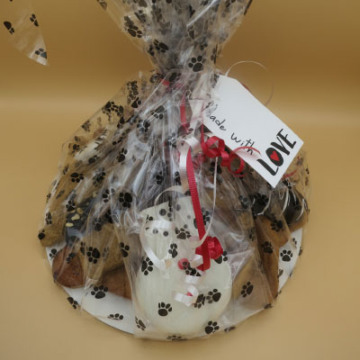 This is a nice variety of some of our most popular treats. We decoratively package the treats as a gift assortment. Good for most size dogs. The Sampler I Gift Assortment includes: 2 Peanut Butter Biscuits, 2 Beef & Parsley Biscuits, 2 Chicken & Oats Biscuits, 6 Different Treats from our “Originals” Catalog, 1 Hamburger or Hotdog, 2 Peanut Butter Cannoli’s, 1 Peanut Butter Squirrel w/Carob Tail, 1 Peanut Butter Bone w/Carob Dip and 1 Sesame Cheese Twist w/Yogurt Dip. The treats included may vary slightly, but the value will never change.